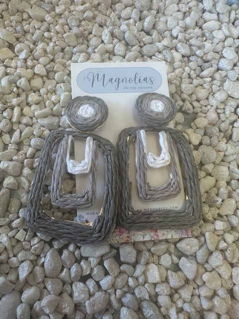 The Boxes on Boxes Stud combines modern geometric design with subtle elegance, featuring twine-inspired textures in tan, gold, gray, and white tones. These carefully crafted earrings offer a contemporary accent perfect for refined everyday wear, enhancing your look with understated sophistication and versatile color harmony.