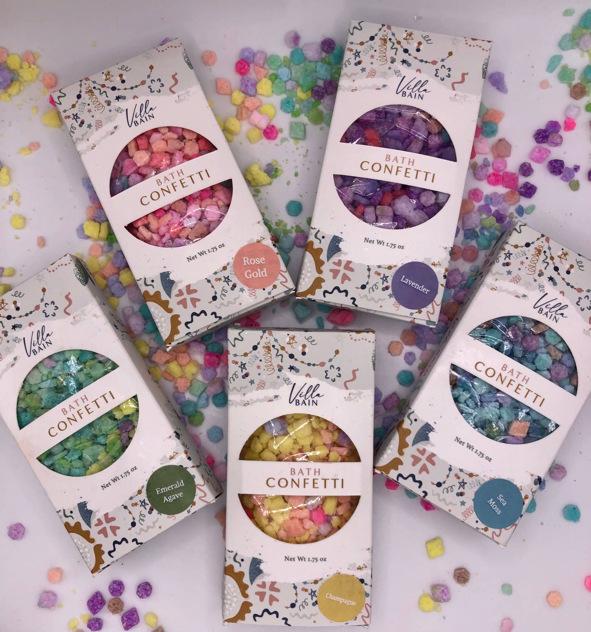 Throw some confetti around and celebrate with this fun bathtime treat. A perfect sized box full of fun colored bath fizz is waiting for you. Try one of our 5 colors/ fragrances or mix and match! Make bath time fun again. Each comes packaged in an individual box perfect for gifting or to display. Perfect gift for celebrating an Engagement, Promotion, Graduation, Anniversary or any other Happy Time! Perfect addition for Gift Boxes or Care Packages.