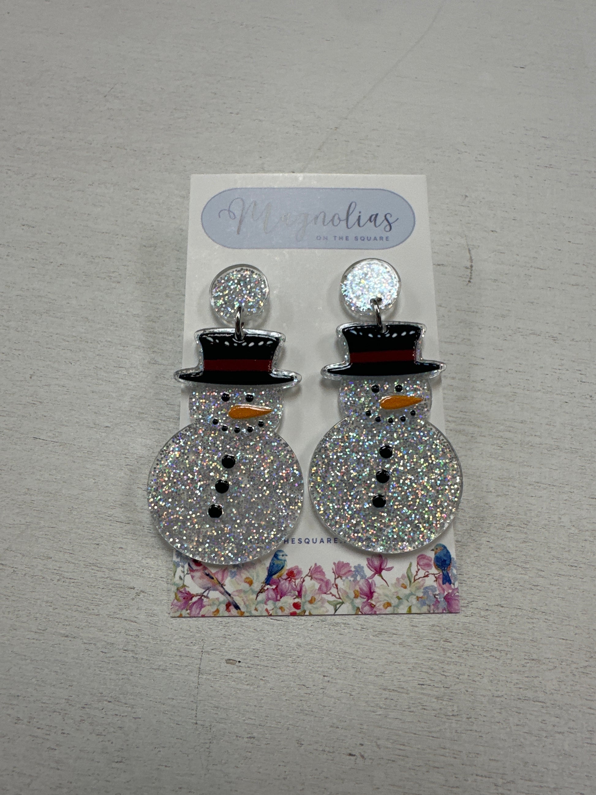 Bring festive sparkle to your winter wardrobe with these charming glitter snowman earrings. Each pair features a whimsical snowman design adorned with shimmering glitter that catches the light beautifully. Perfect for holiday gatherings, seasonal celebrations, or adding a touch of cheerful elegance to everyday wear. The lightweight construction ensures comfortable all-day wear, while the eye-catching details make them an ideal conversation starter. Ideal for snowman enthusiasts and holiday jewelry lovers alike.