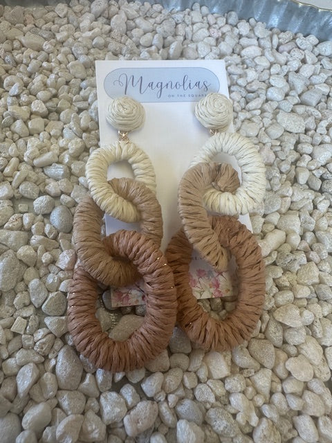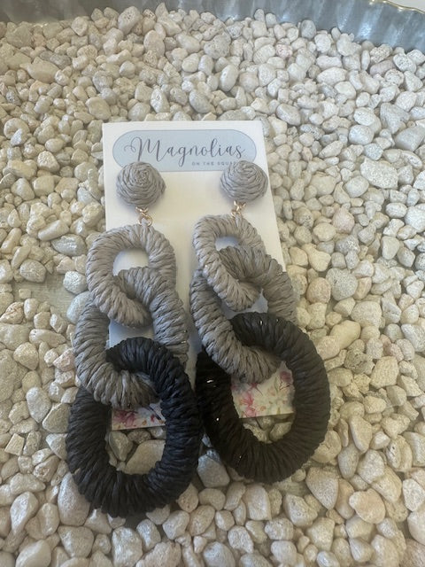 The Twine Chains Dangle in Multi Brown, Black, and Gray showcases a refined interplay of earthy and neutral tones, expertly designed to provide dimensional elegance. These earrings feature a thoughtfully layered chain design that adds movement and texture, making them a sophisticated accessory for elevating both everyday and formal attire with a contemporary yet timeless appeal.